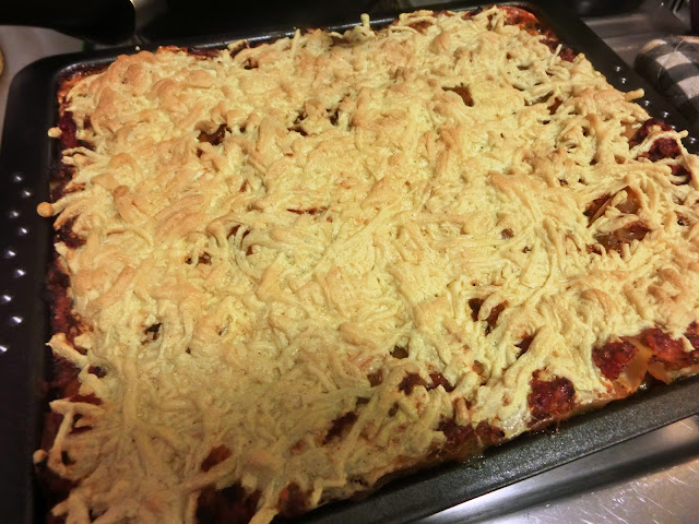 Riesige, gelungene Lasagne, bestreut mit vieeeel Daiya-Käse (da er sonst ablaufen würde und wir einfach nicht dazu gekommen sind, ihn zu verbrauchen!)